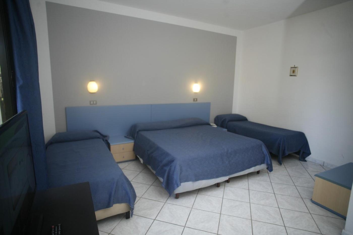 Camera Quadrupla con Doccia. This air-conditioned quadruple room is comprised of a TV with cable channels and a private bathroom. The unit has 3 beds. ;